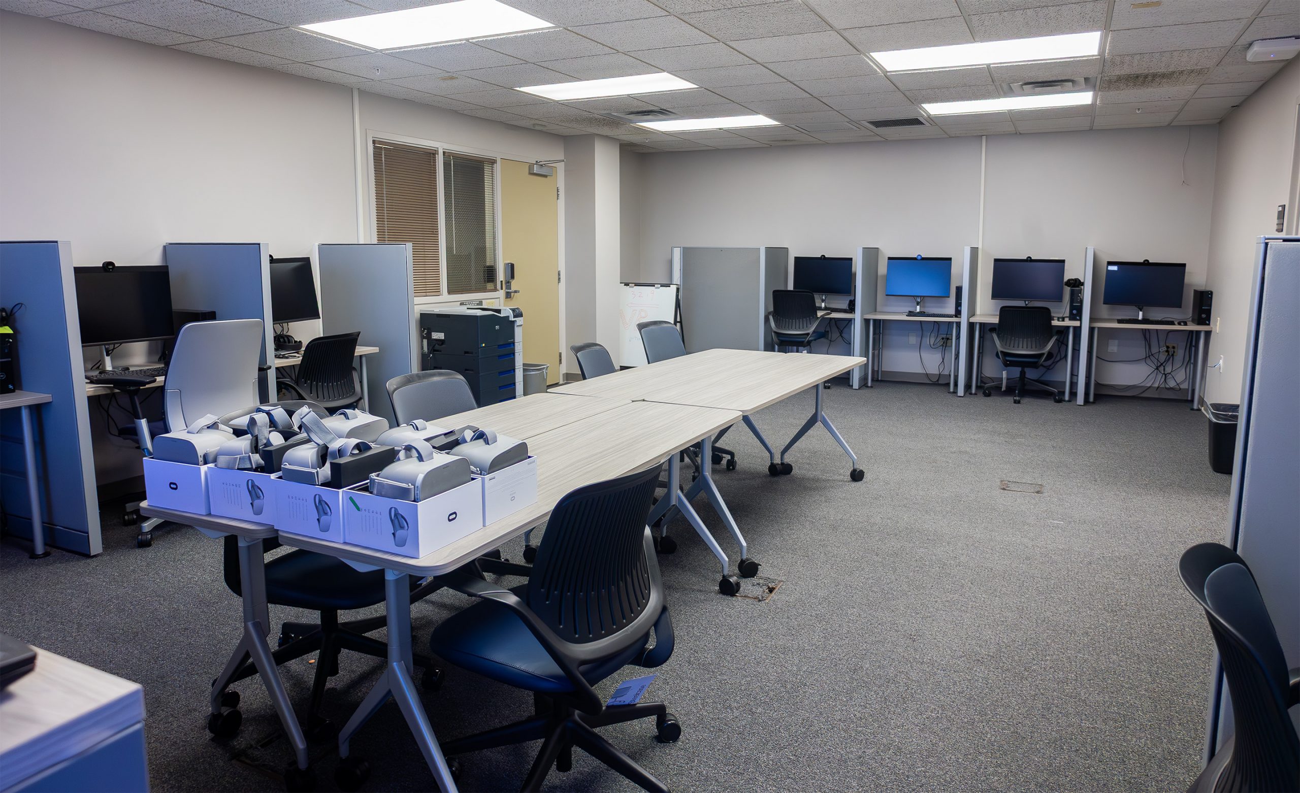 The lab includes three rooms, with a larger room designed to conduct screen-based studies and two smaller rooms designed for face-to-face or “Wizard-of-Oz” research.